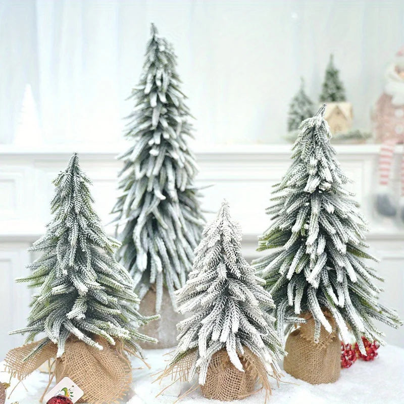 Yeknu 1 Piece Mini Falling Snow Christmas Tree PE Flocked Christmas Tree Tabletop Decorator Scene Arrangement Decorations