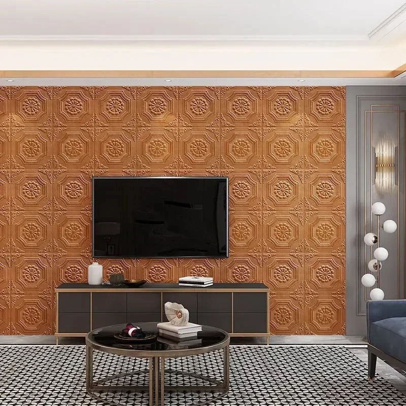 Yeknu 20Pcs 3D Wallpaper Wall Stickers Self-Adhesive Foam Panel Home Decor for Living Room Bedroom Ceiling TV Wall Art 35X35CM