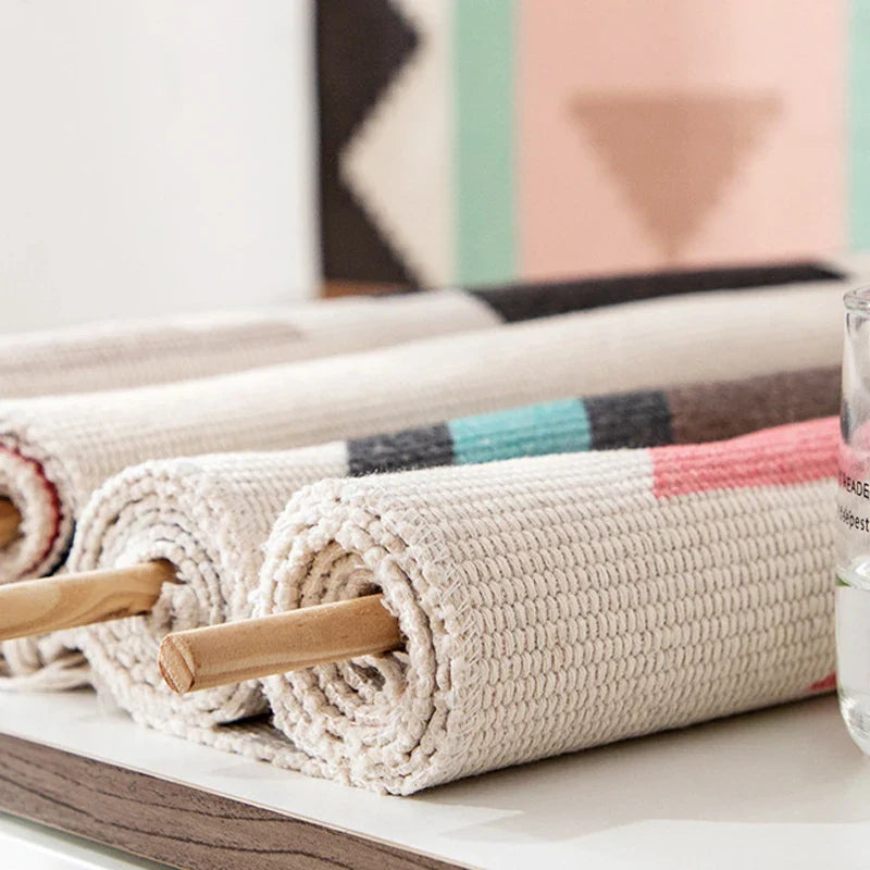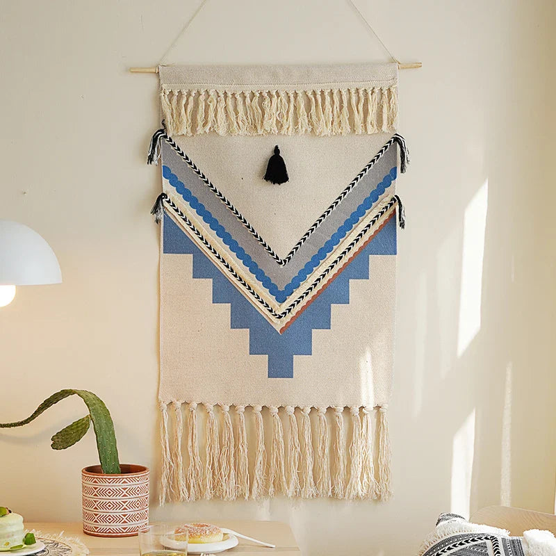 Boho Hanging Tapestry with Handmade Tassels Cotton Linen Tufting Wall Hanging Fabric Cover Blanket Ramadan Decor Home Decoration