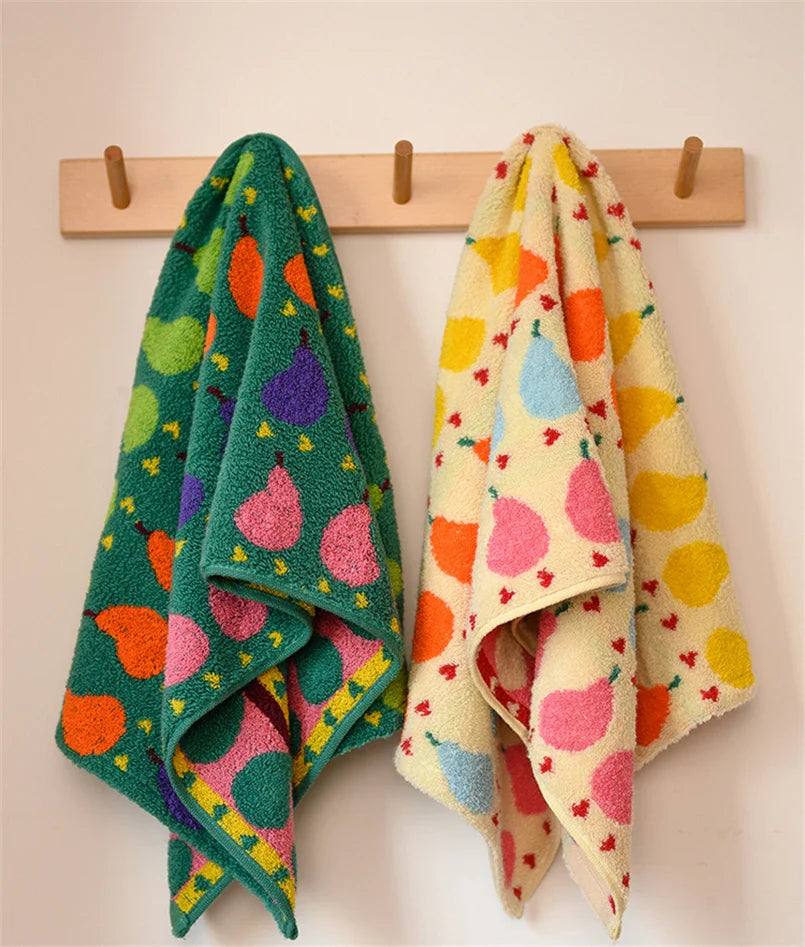 Towel features: It is very soft. skin-friendly. strong absorption. The towels are brightly colored. the fruit and vegetable patterns are in an idyllic and cute style.The towel has patterns on A &B sides