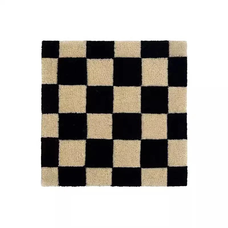 Handmade Tufting Seat Cushion Mat Soft Square Geometric Grids Chair Sofa Pad Hanging Wall Decoration Tapestry Home Office Decor