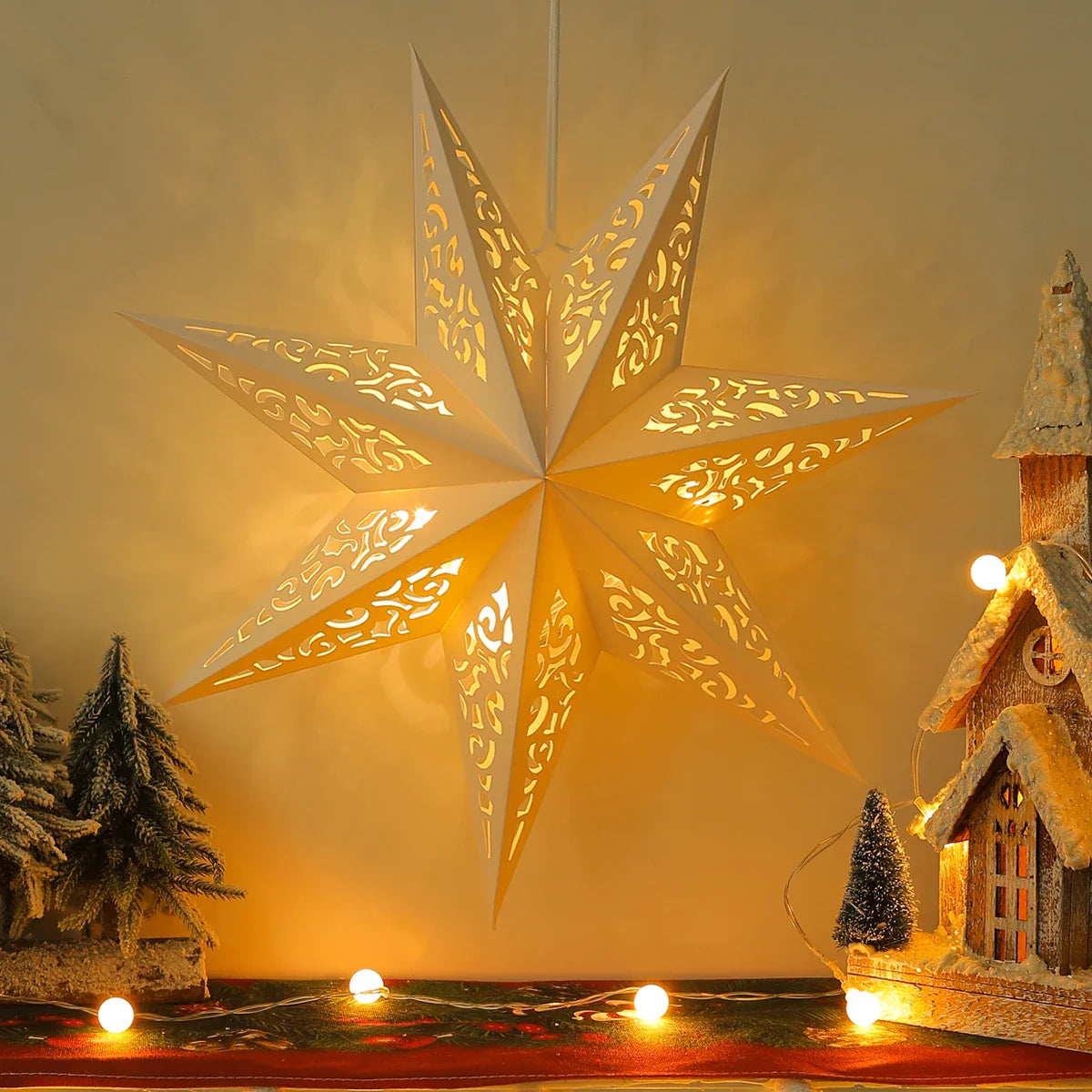 Hooux Hollow Star Hanging Pendants Ramadan Decoration 2024 for Home Navidad Natal Noel Gifts Christmas Ornaments New Year 2025
