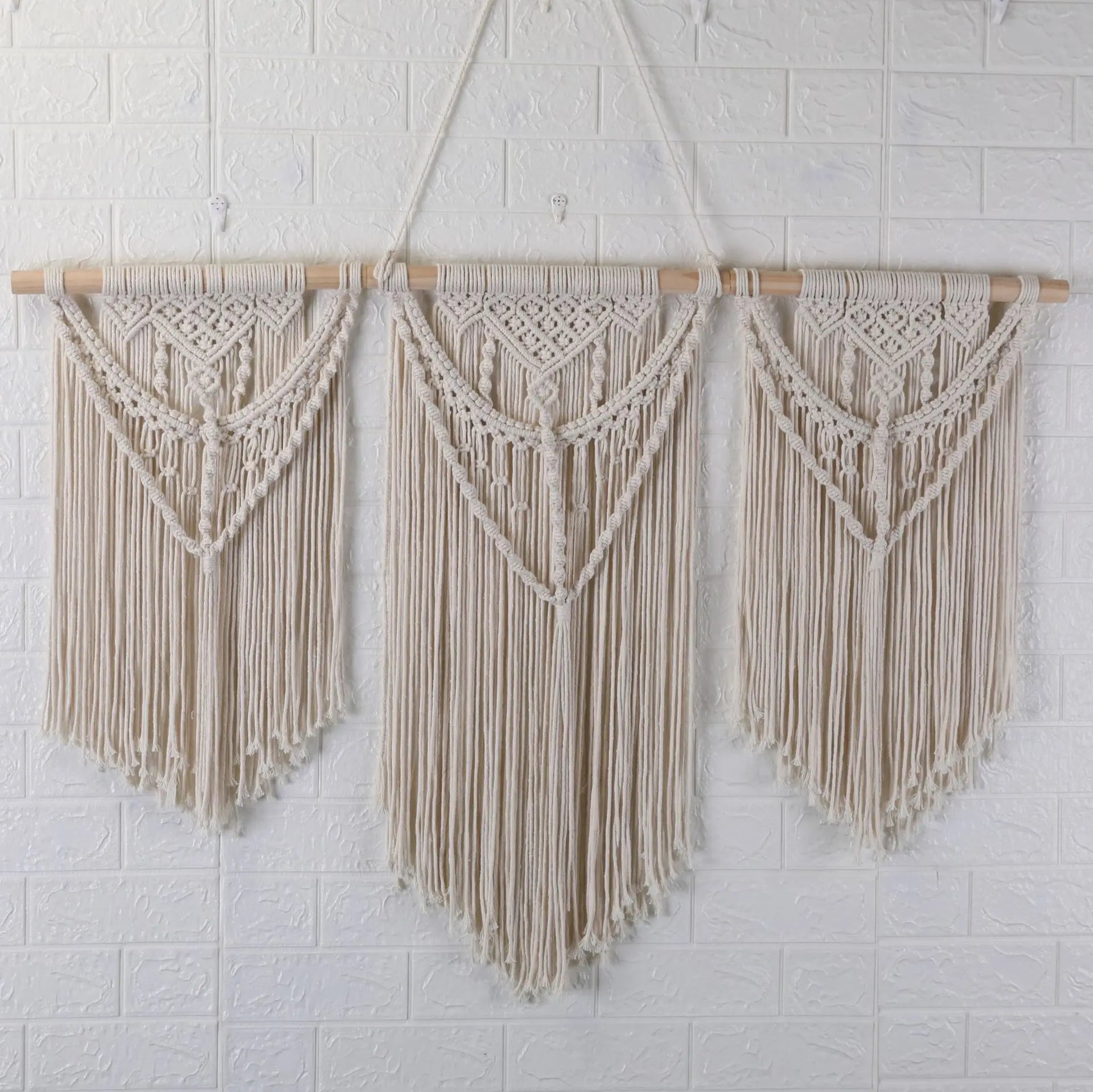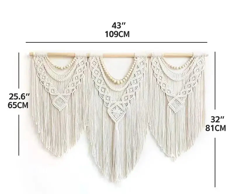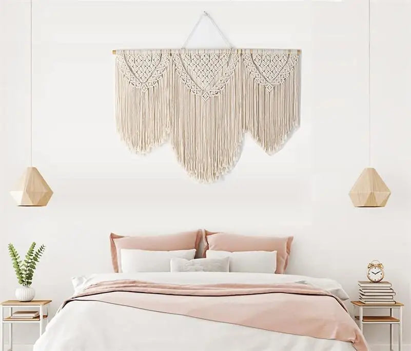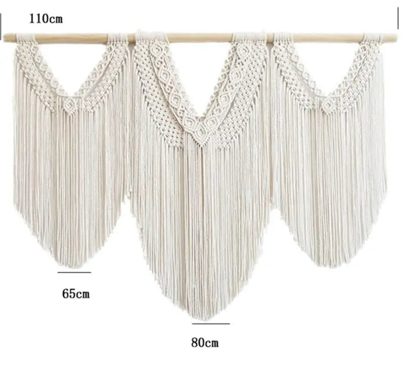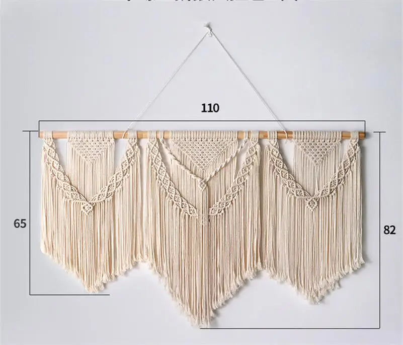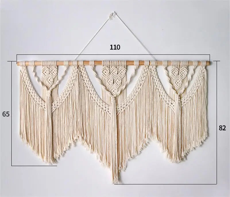 Hooux Large Macrame Tapestry Hand Made Cotton Rope Tassel Pendant Wall Hanging Tapestry with Wooden Stick Hand-Woven Bohemia Tassel