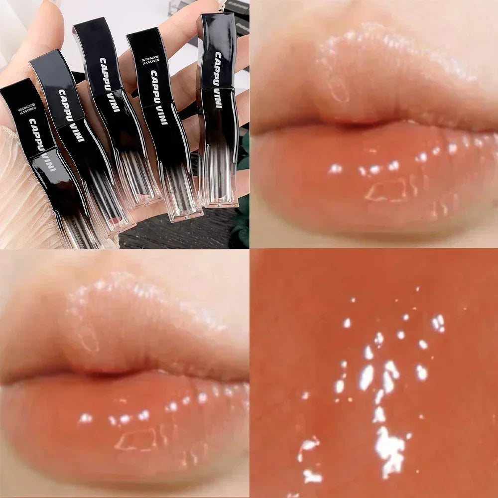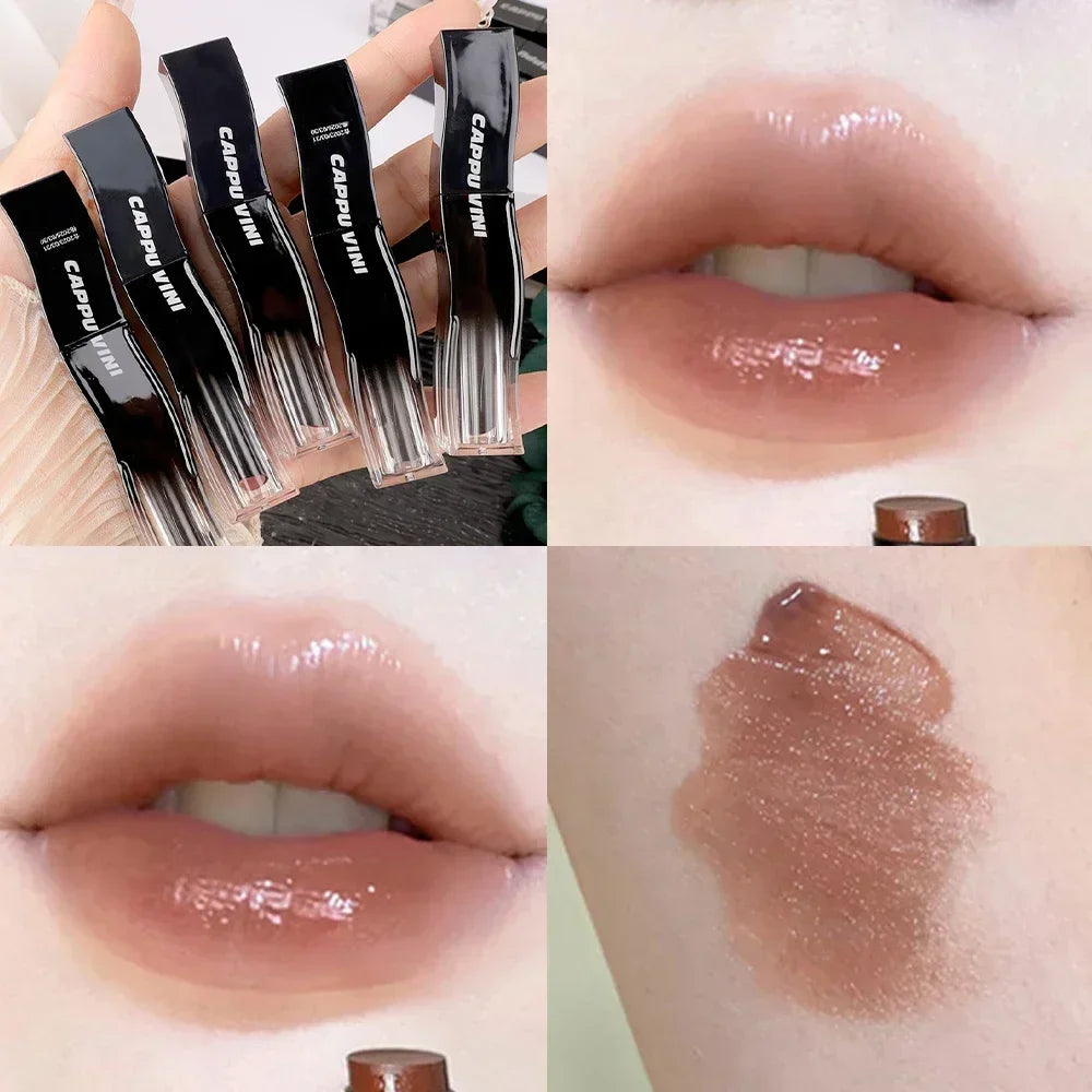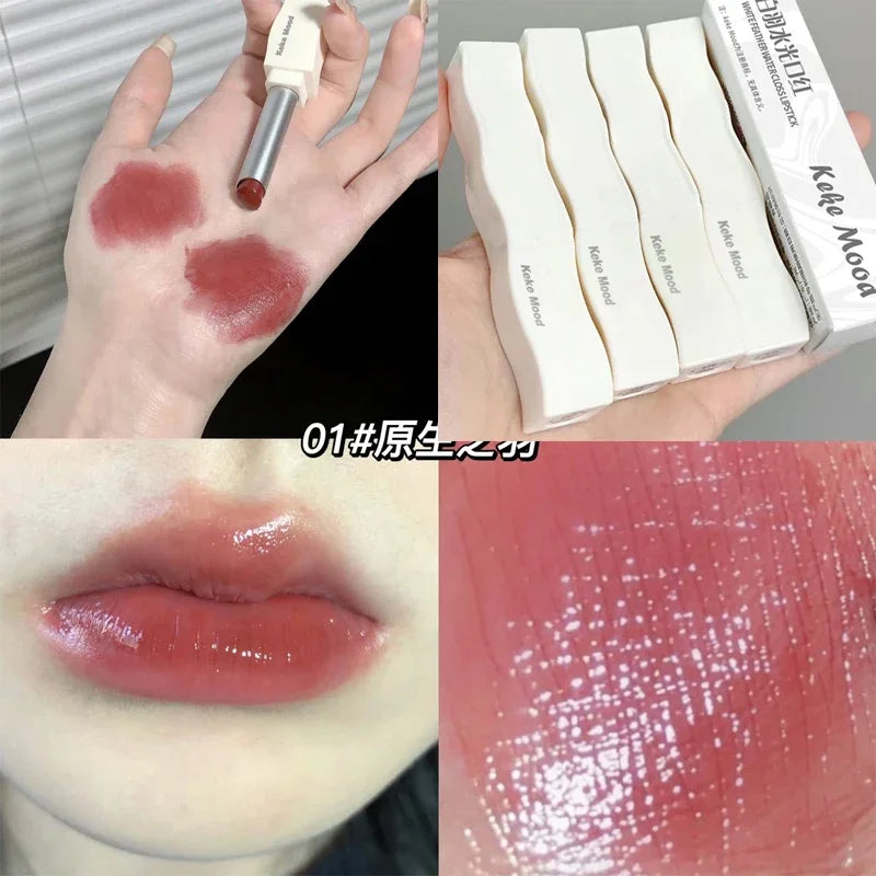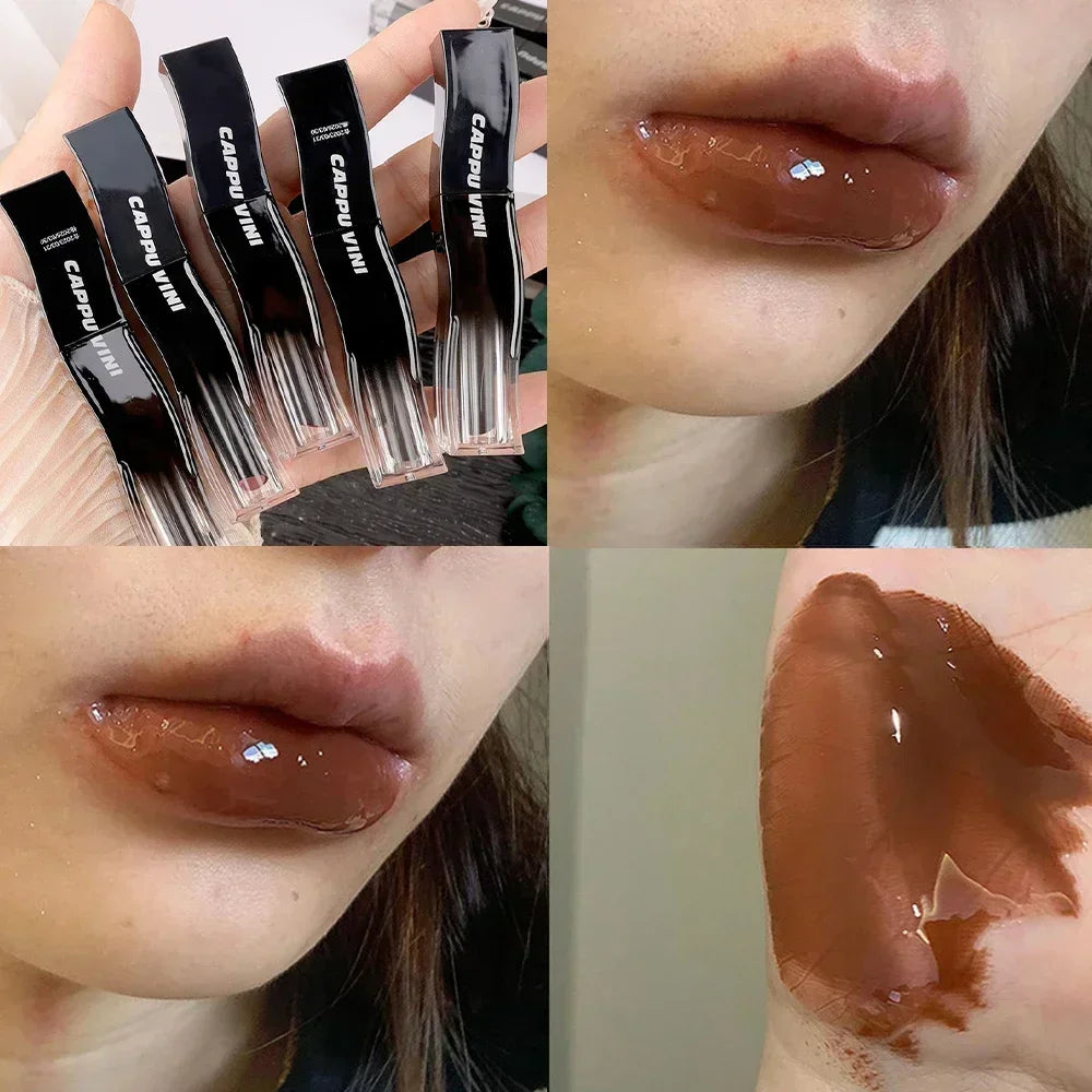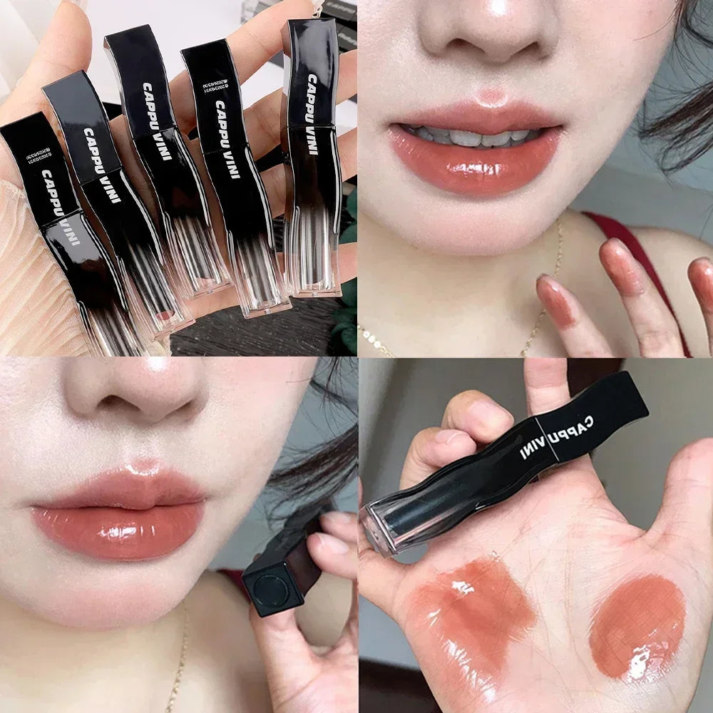 Hooux New Jelly Mirror Black Tube Lipstick Long Lasting Non-stick Cup Moisturize Water Light Lip Gloss Korean Lips Makeup Cosmetic 1pc