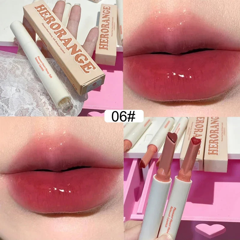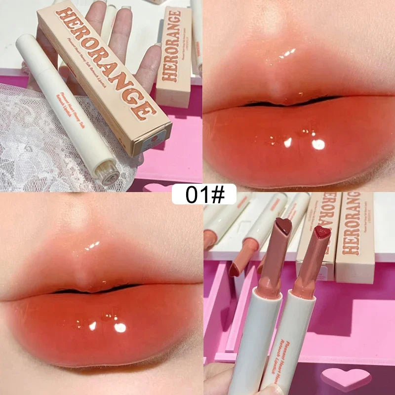 Hooux New Mirror Glass Solid Lip Glaze Water Light Heart Shape Lipstick Pen Clear Oil Jelly Lip Gloss Korean Tint Makeup Girl Cosmetic