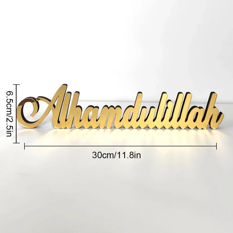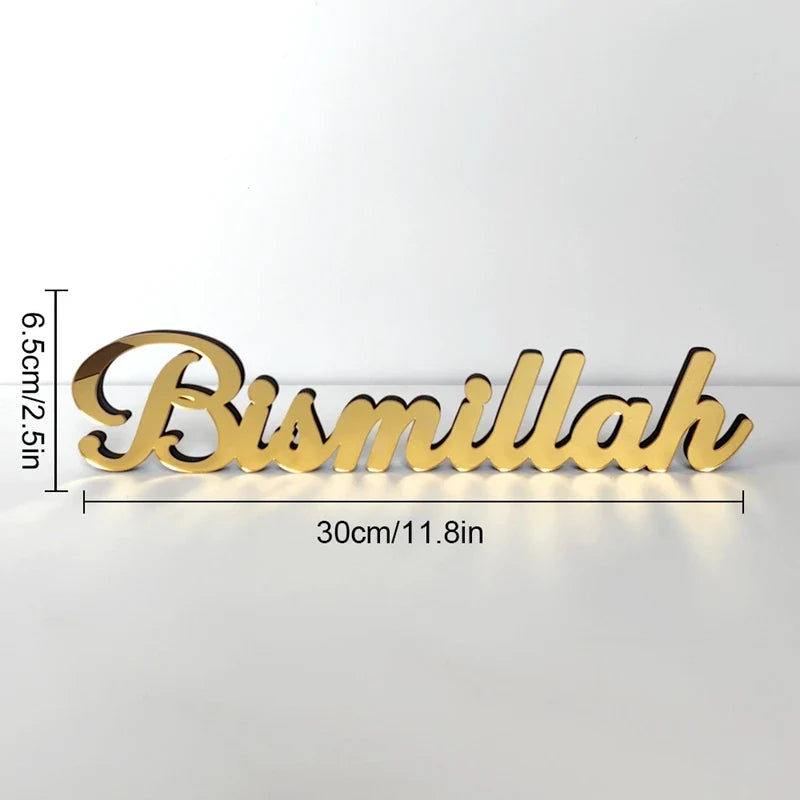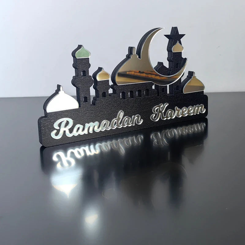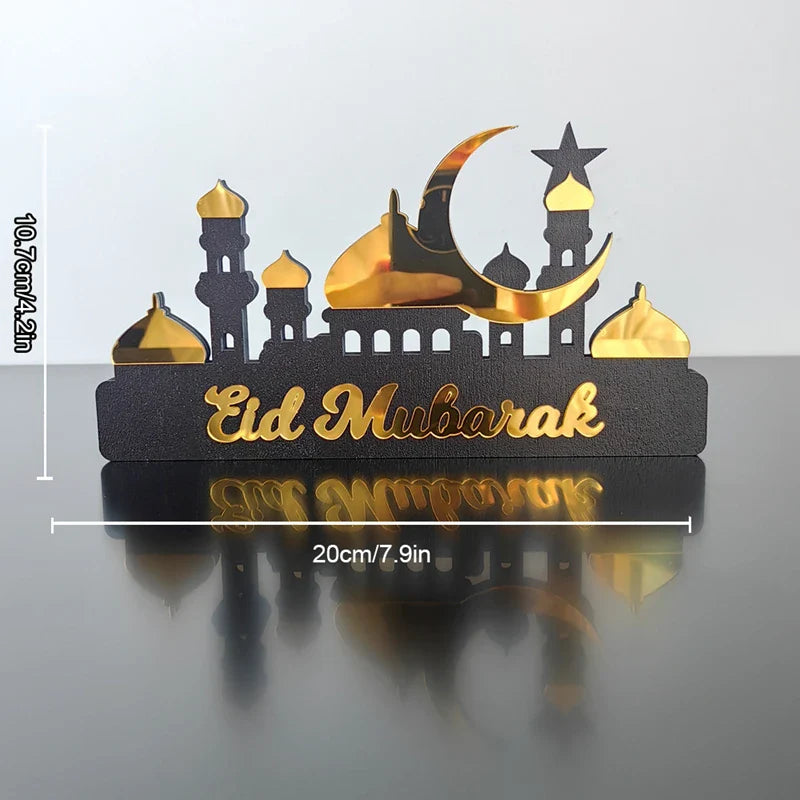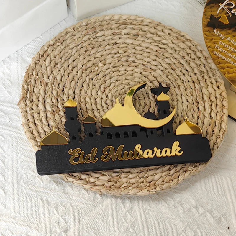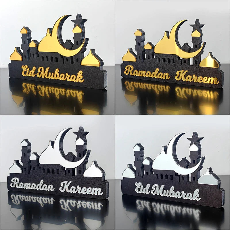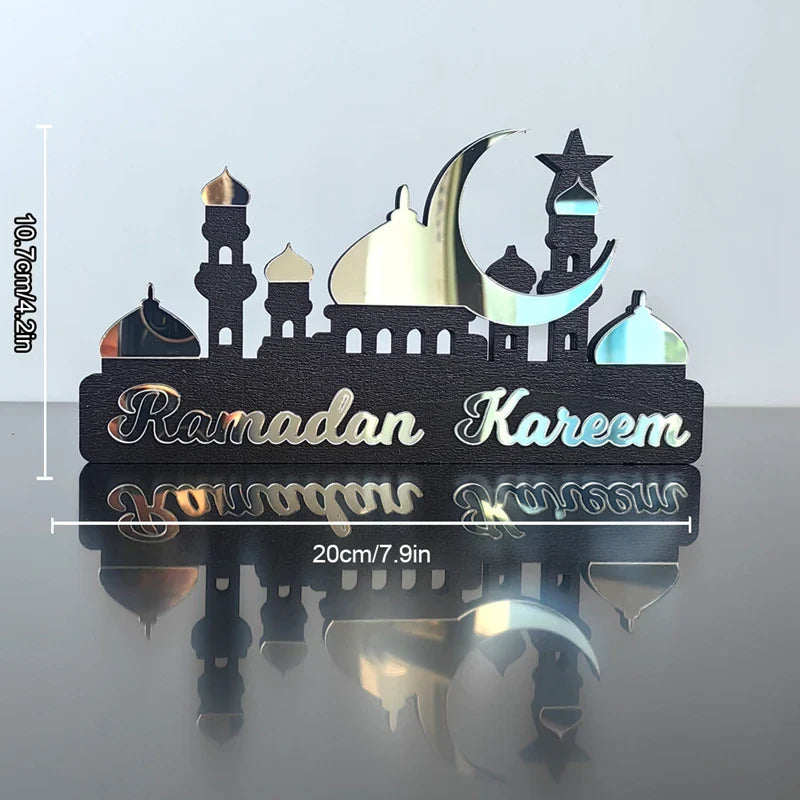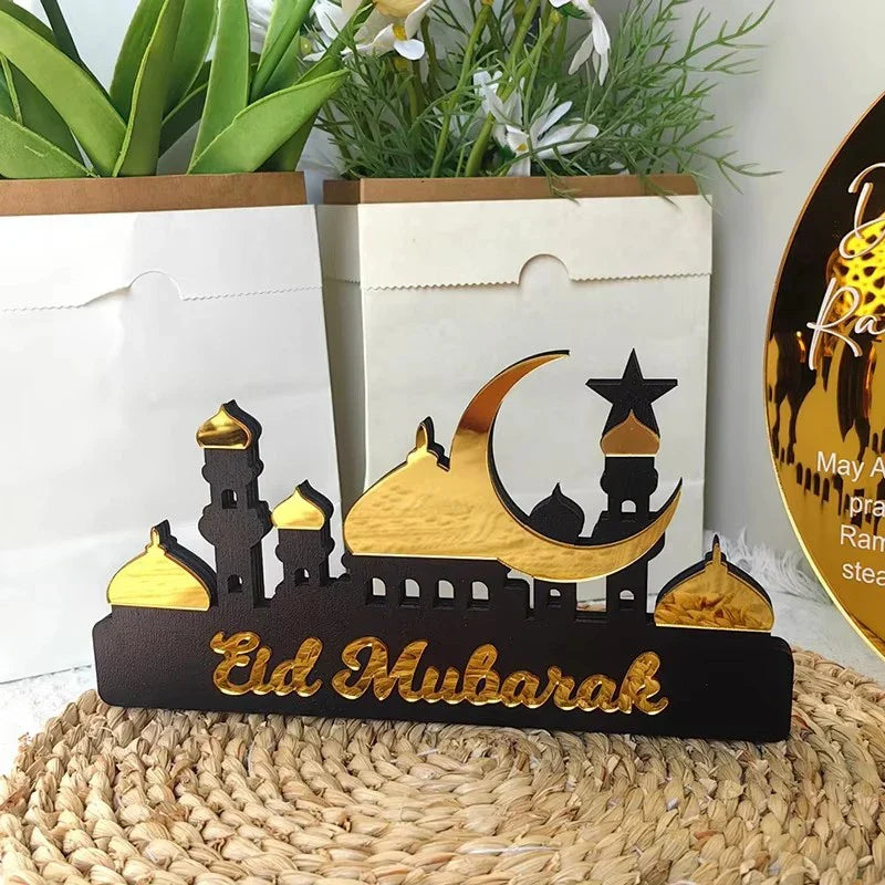 Hooux Ramadan Kareem Table Ornament Wooden Acrylic Eid Mubarak Moon Star Castle DIY Tabletop Decoration Islamic Party Home Decor