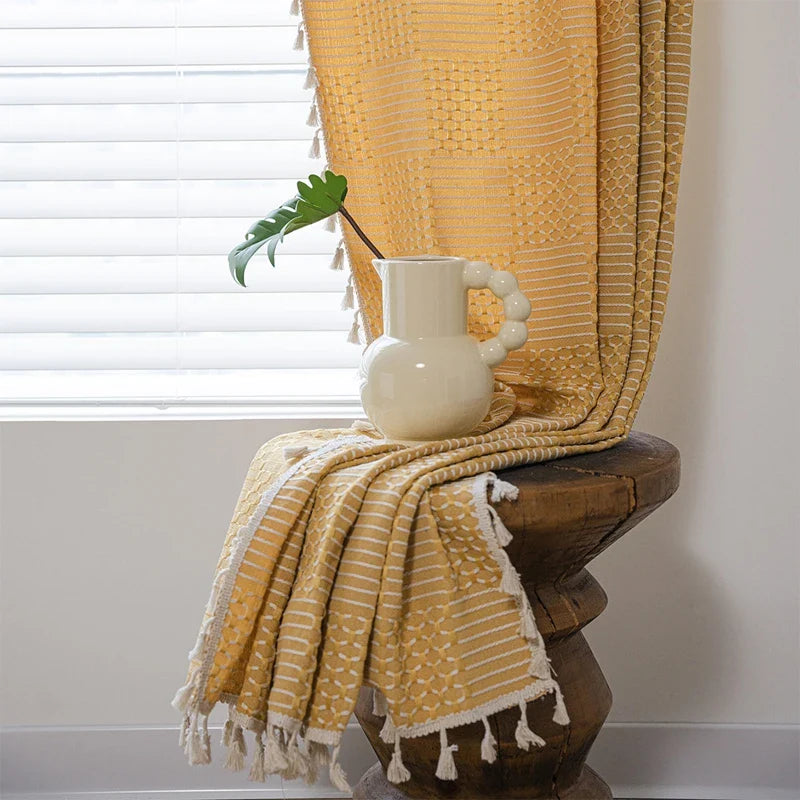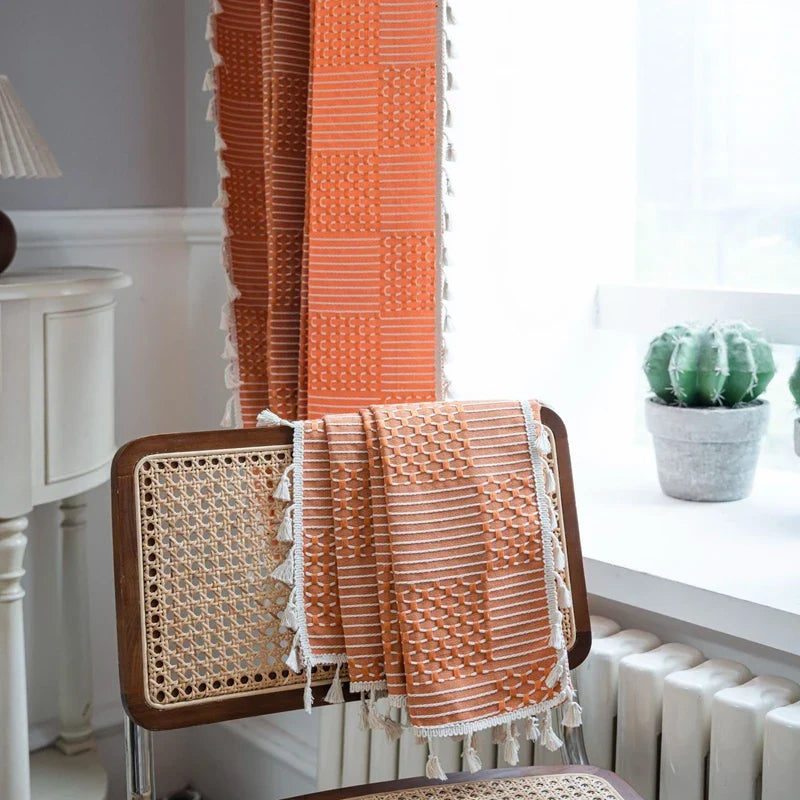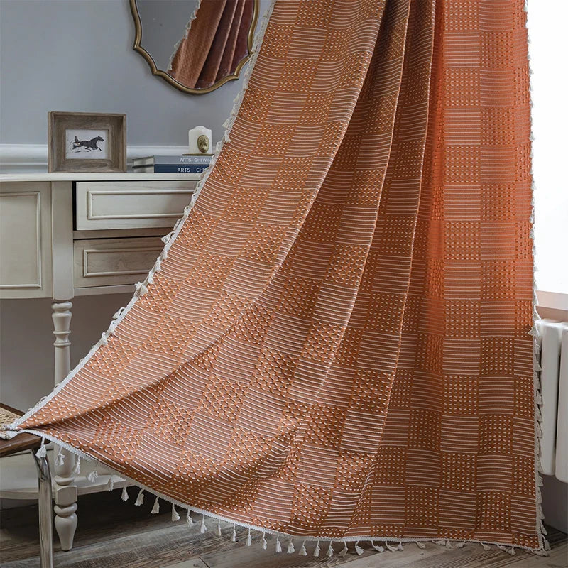 Hooux Terylene Cotton Semi-blackout Curtain Finished Embroidery Solid Color Living Room Kitchen Valance Bedroom Home Decoration