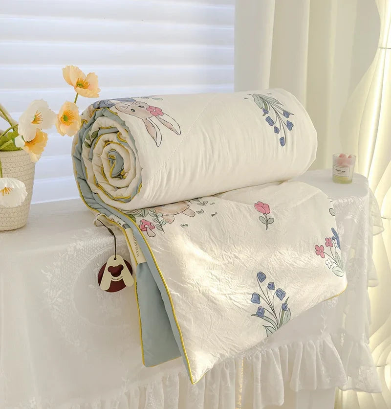 Hooux Washed Double Gauze Spring Summer Quilt Queen Grade A Lightweight Comforter Soya Fibre Filling Soft Breathable Summer Blanket